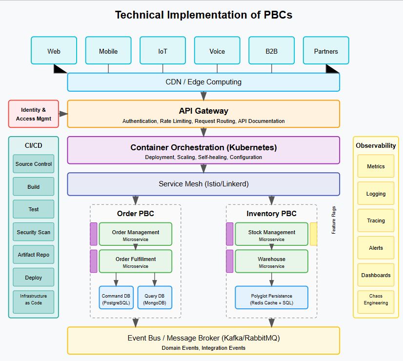 In an e-commerce platform, for example, PBCs may include Product Catalog, Order Management, Inventory, Customer Accounts, Payments, and Promotions.
